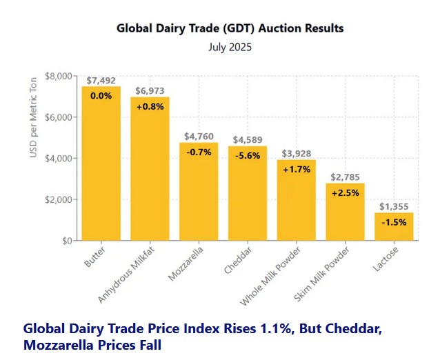 During 2025, the average Cheddar price on the GDT auctions ranged from a low of $4,328 per ton at November’s second auction to a high of $5,519 per ton in May’s first auction.